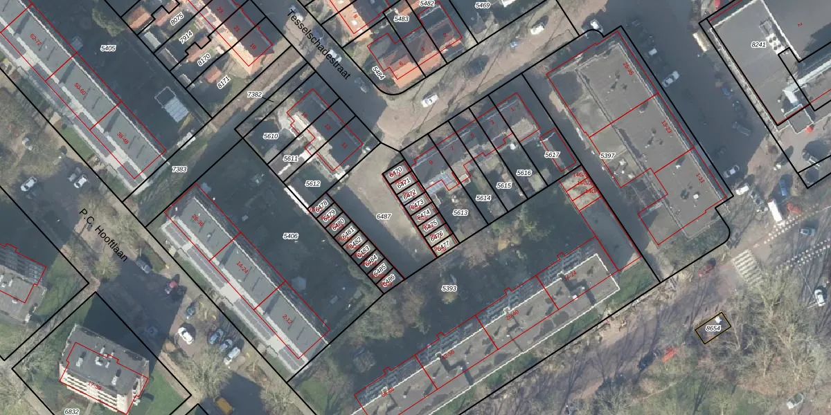 Het perceel waarop Tesselschadestraat 9-G-4 staat heeft een oppervlakte van 18 m². Dit is een klein perceel. De perceeloppervlakte wordt geregistreerd door het Kadaster. Gedetailleerde informatie over de maten van dit perceel kunt u vinden in het rapport Kadastrale kaart met maatvoering van Tesselschadestraat 9-G-4.