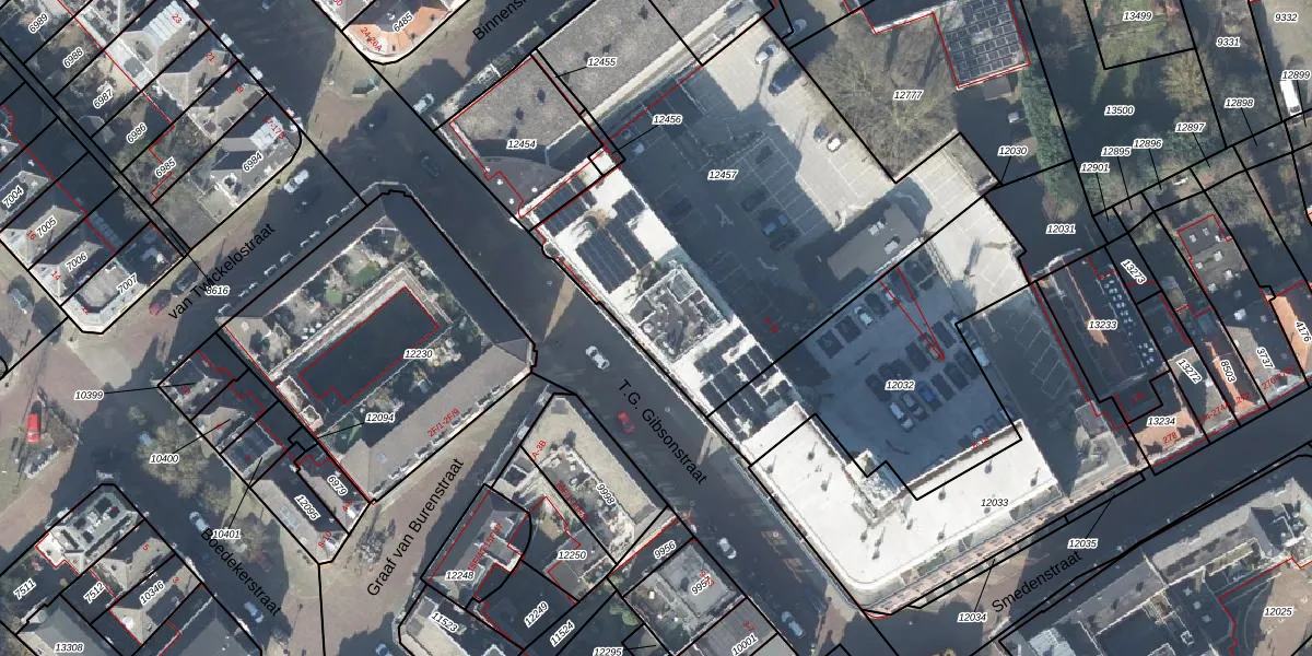 Het perceel waarop T.G. Gibsonstraat 6-F-13 staat heeft een oppervlakte van 2363 m². Dit is een zeer groot perceel. De perceeloppervlakte wordt geregistreerd door het Kadaster. Gedetailleerde informatie over de maten van dit perceel kunt u vinden in het rapport Kadastrale kaart met maatvoering van T.G. Gibsonstraat 6-F-13.