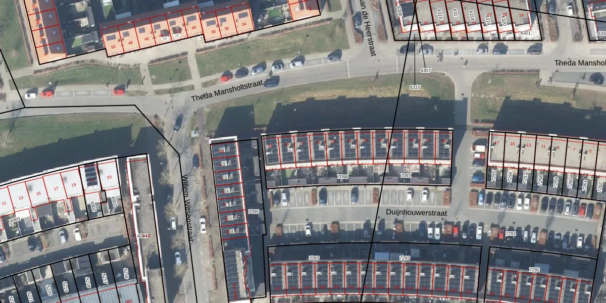 Het perceel waarop Theda Mansholtstraat 37 staat heeft een oppervlakte van 733 m². Dit is een groot perceel. De perceeloppervlakte wordt geregistreerd door het Kadaster. Gedetailleerde informatie over de maten van dit perceel kunt u vinden in het rapport Kadastrale kaart met maatvoering van Theda Mansholtstraat 37.