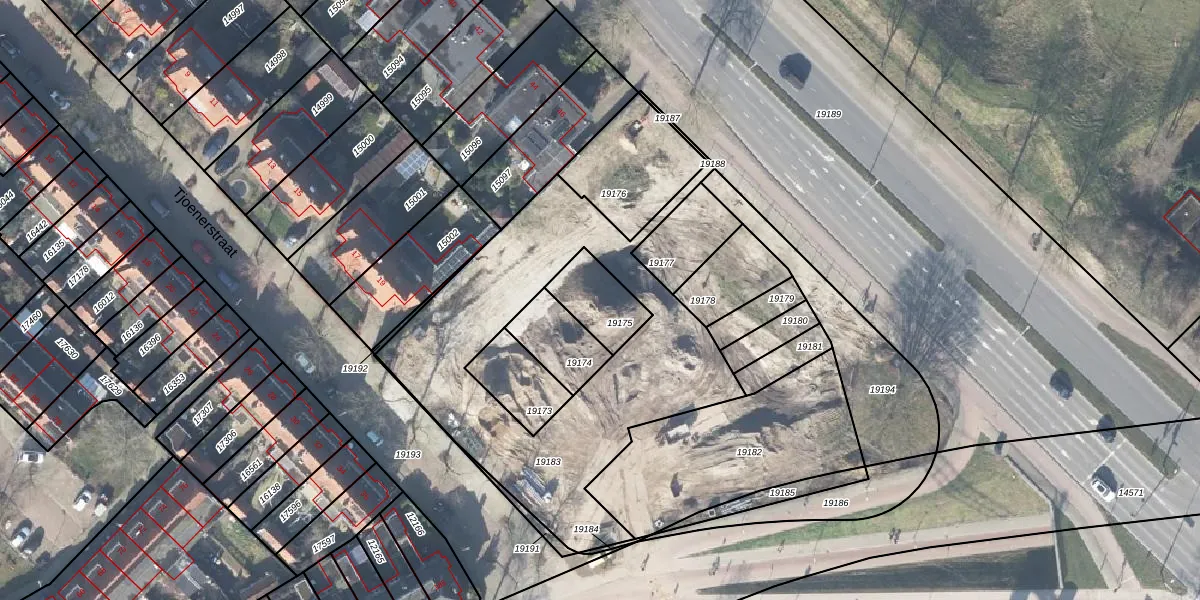 Tjoenerstraat 25 is gelegen op kadastraal perceel DVT00B19175. Deze kadastrale aanduiding is uniek en wordt gebruikt door het Kadaster om eigendomsrechten en andere zakelijke rechten vast te leggen. Het perceel maakt onderdeel uit van de kadastrale gemeente Deventer.
