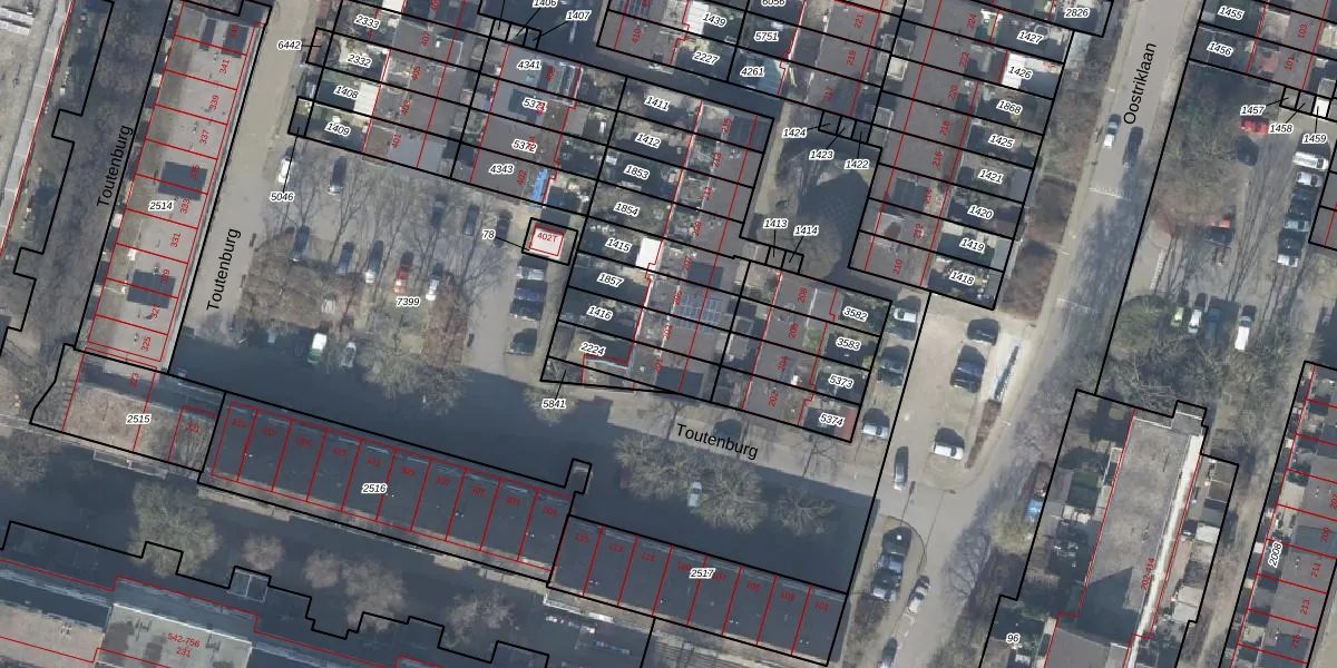 Gebruik de zoekbalk of klik op een perceel voor informatie over de adressen binnen dit perceel.