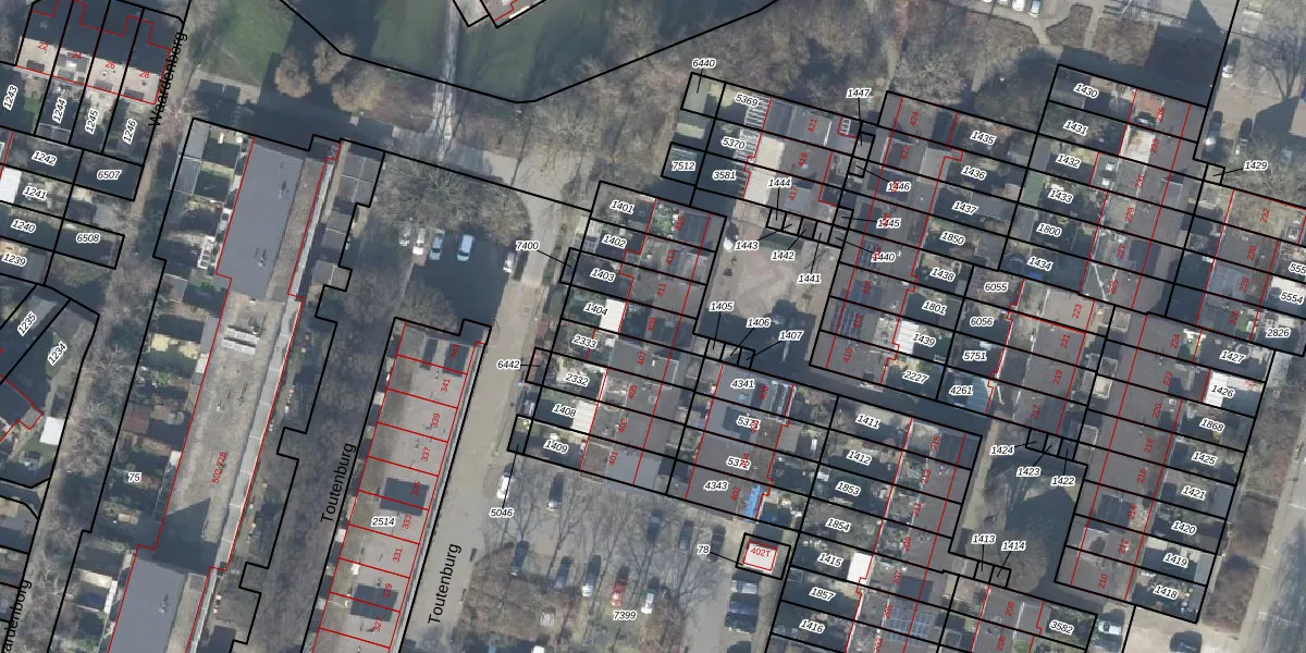 Toutenburg 409 is gelegen op kadastraal perceel DVT00L1404. Deze kadastrale aanduiding is uniek en wordt gebruikt door het Kadaster om eigendomsrechten en andere zakelijke rechten vast te leggen. Het perceel maakt onderdeel uit van de kadastrale gemeente Deventer.