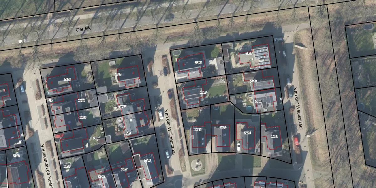 Gebruik de zoekbalk of klik op een perceel voor informatie over de adressen binnen dit perceel.