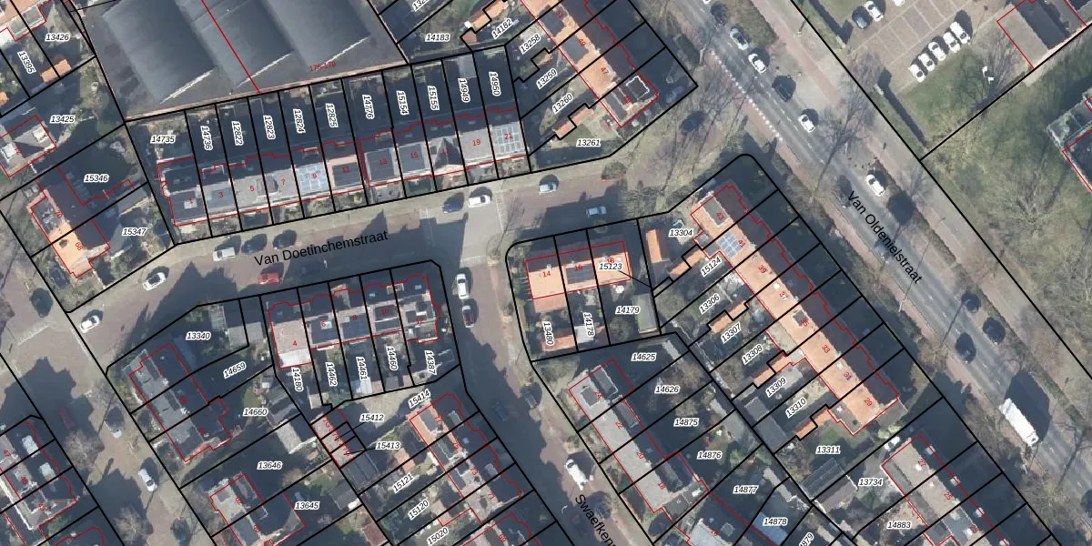 Van Doetinchemstraat 14 is gelegen op kadastraal perceel DVT00B13480. Deze kadastrale aanduiding is uniek en wordt gebruikt door het Kadaster om eigendomsrechten en andere zakelijke rechten vast te leggen. Het perceel maakt onderdeel uit van de kadastrale gemeente Deventer.