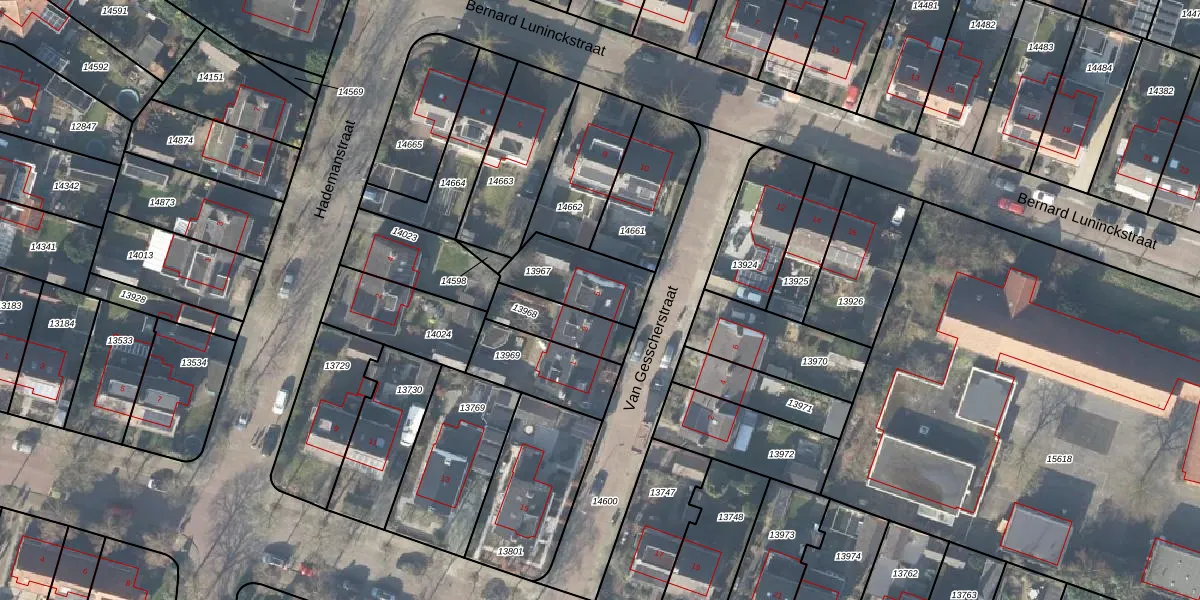 Het perceel waarop Van Gesscherstraat 5 staat heeft een oppervlakte van 225 m². Dit is een middelgroot perceel. De perceeloppervlakte wordt geregistreerd door het Kadaster. Gedetailleerde informatie over de maten van dit perceel kunt u vinden in het rapport Kadastrale kaart met maatvoering van Van Gesscherstraat 5.