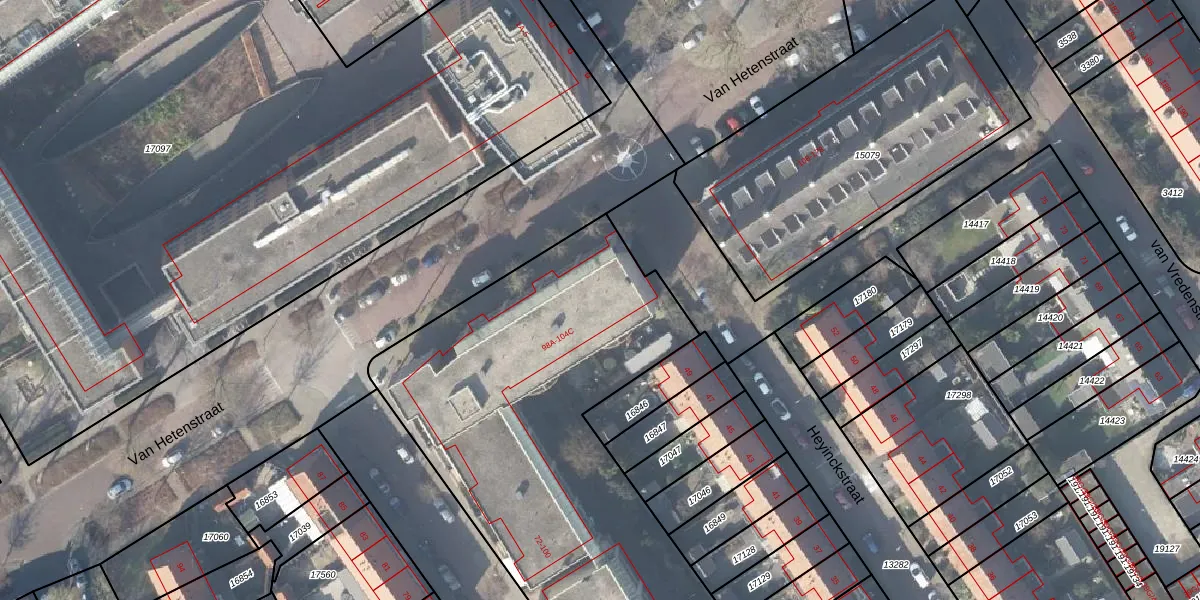 Het perceel waarop Van Hetenstraat 100-B staat heeft een oppervlakte van 3212 m². Dit is een zeer groot perceel. De perceeloppervlakte wordt geregistreerd door het Kadaster. Gedetailleerde informatie over de maten van dit perceel kunt u vinden in het rapport Kadastrale kaart met maatvoering van Van Hetenstraat 100-B.