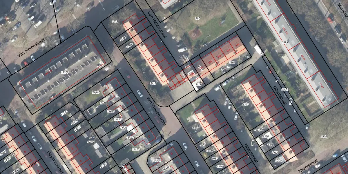 Het perceel waarop Van Hetenstraat 194-G-1 staat heeft een oppervlakte van 901 m². Dit is een groot perceel. De perceeloppervlakte wordt geregistreerd door het Kadaster. Gedetailleerde informatie over de maten van dit perceel kunt u vinden in het rapport Kadastrale kaart met maatvoering van Van Hetenstraat 194-G-1.