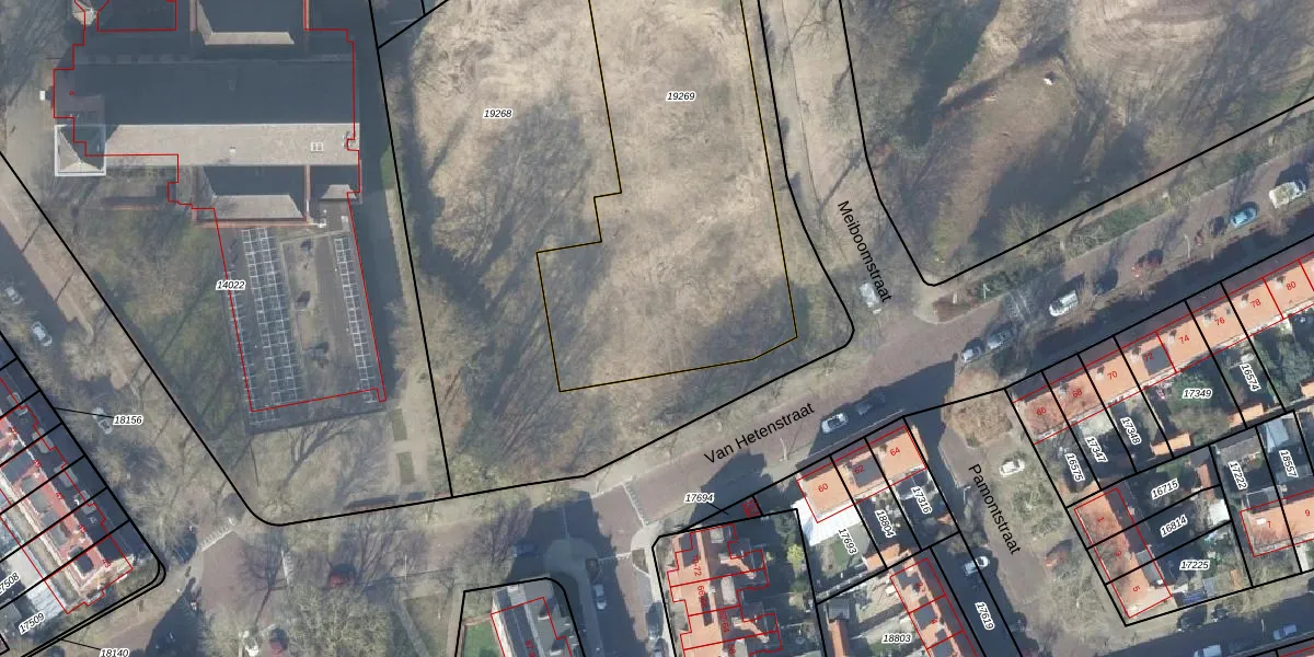 Het perceel waarop Van Hetenstraat 47-H staat heeft een oppervlakte van 1693 m². Dit is een zeer groot perceel. De perceeloppervlakte wordt geregistreerd door het Kadaster. Gedetailleerde informatie over de maten van dit perceel kunt u vinden in het rapport Kadastrale kaart met maatvoering van Van Hetenstraat 47-H.