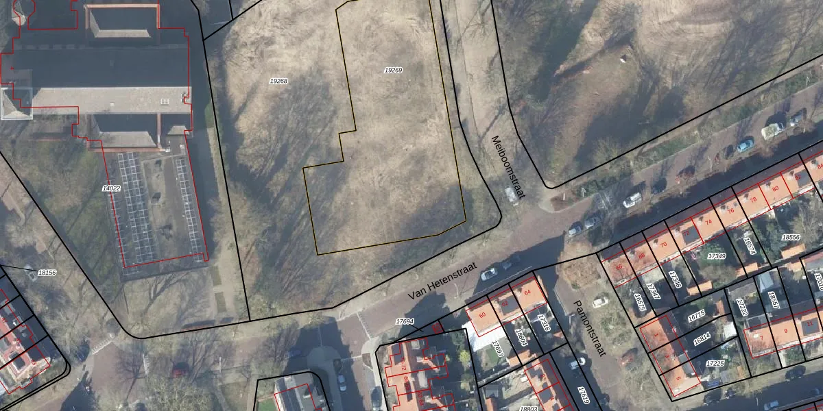Het perceel waarop Van Hetenstraat 49-H staat heeft een oppervlakte van 1693 m². Dit is een zeer groot perceel. De perceeloppervlakte wordt geregistreerd door het Kadaster. Gedetailleerde informatie over de maten van dit perceel kunt u vinden in het rapport Kadastrale kaart met maatvoering van Van Hetenstraat 49-H.