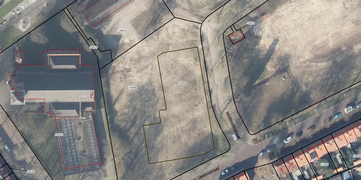 Het perceel waarop Van Hetenstraat 53-A staat heeft een oppervlakte van 1693 m². Dit is een zeer groot perceel. De perceeloppervlakte wordt geregistreerd door het Kadaster. Gedetailleerde informatie over de maten van dit perceel kunt u vinden in het rapport Kadastrale kaart met maatvoering van Van Hetenstraat 53-A.