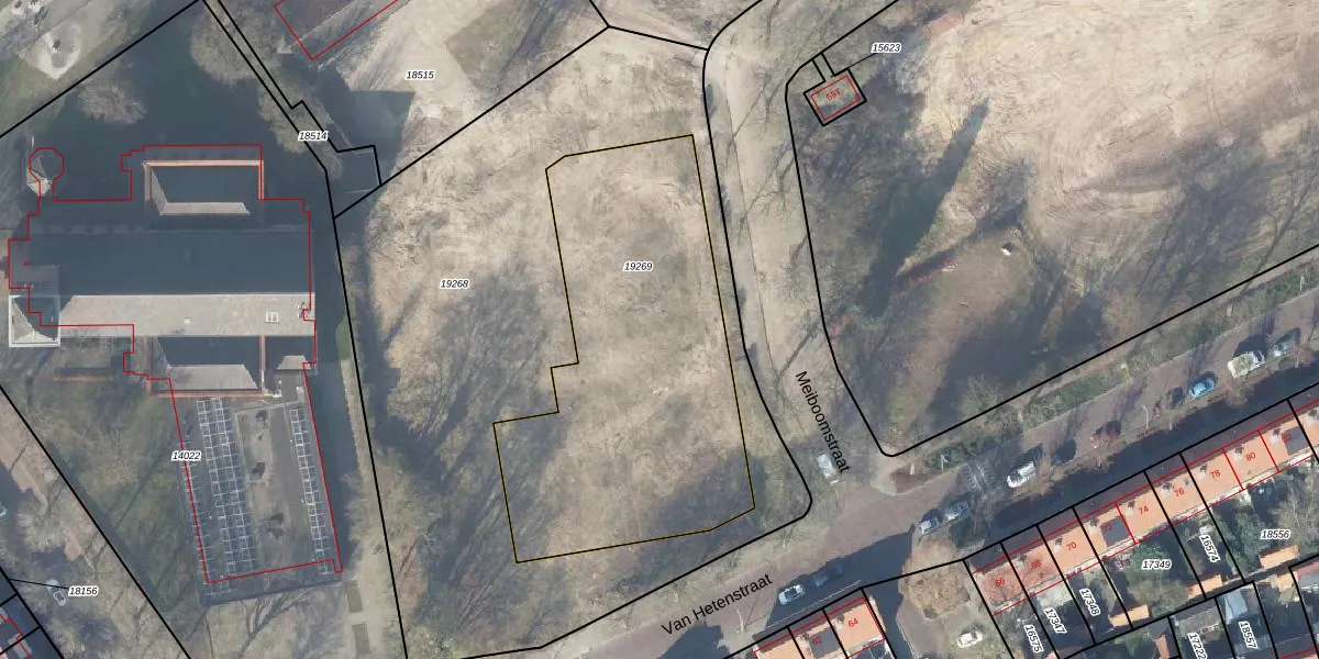 Het perceel waarop Van Hetenstraat 53-E staat heeft een oppervlakte van 1693 m². Dit is een zeer groot perceel. De perceeloppervlakte wordt geregistreerd door het Kadaster. Gedetailleerde informatie over de maten van dit perceel kunt u vinden in het rapport Kadastrale kaart met maatvoering van Van Hetenstraat 53-E.