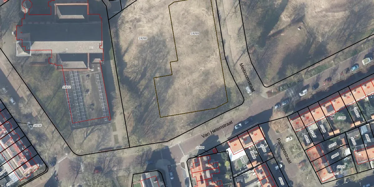 Het perceel waarop Van Hetenstraat 53-K staat heeft een oppervlakte van 1693 m². Dit is een zeer groot perceel. De perceeloppervlakte wordt geregistreerd door het Kadaster. Gedetailleerde informatie over de maten van dit perceel kunt u vinden in het rapport Kadastrale kaart met maatvoering van Van Hetenstraat 53-K.
