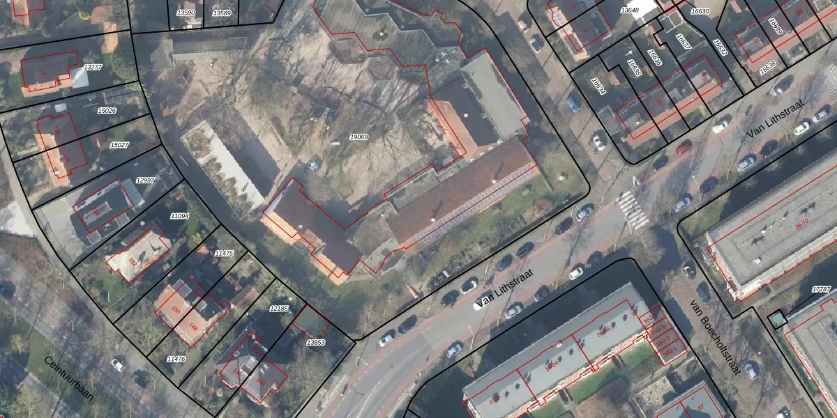 Het perceel waarop Van Lithstraat 1 staat heeft een oppervlakte van 6088 m². Dit is een zeer groot perceel. De perceeloppervlakte wordt geregistreerd door het Kadaster. Gedetailleerde informatie over de maten van dit perceel kunt u vinden in het rapport Kadastrale kaart met maatvoering van Van Lithstraat 1.