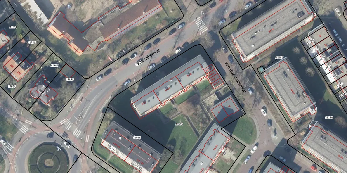 Het perceel waarop Van Lithstraat 22 staat heeft een oppervlakte van 4170 m². Dit is een zeer groot perceel. De perceeloppervlakte wordt geregistreerd door het Kadaster. Gedetailleerde informatie over de maten van dit perceel kunt u vinden in het rapport Kadastrale kaart met maatvoering van Van Lithstraat 22.