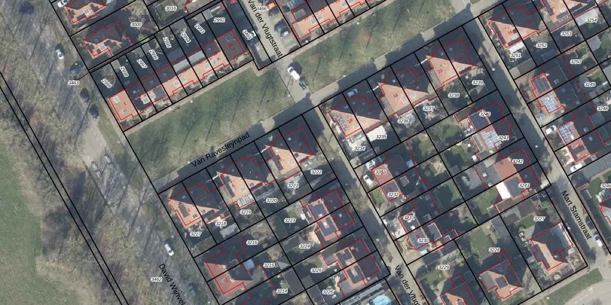 Gebruik de zoekbalk of klik op een perceel voor informatie over de adressen binnen dit perceel.