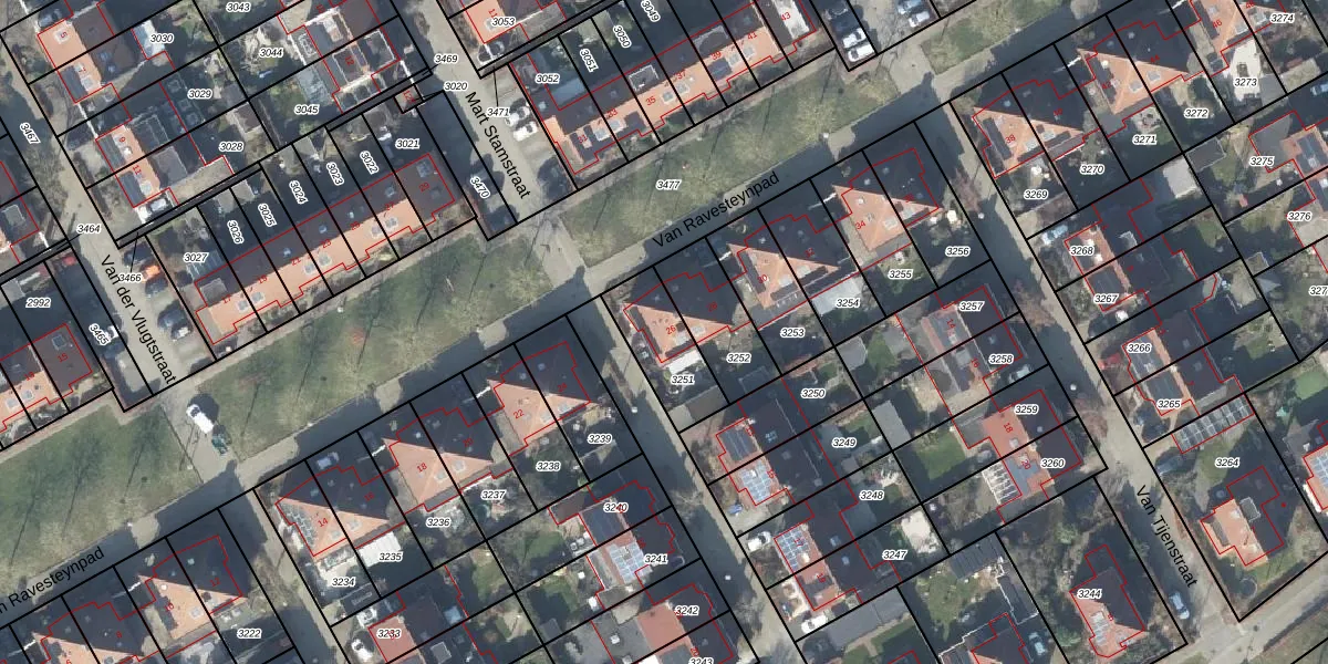 Het perceel waarop Van Ravesteynpad 26 staat heeft een oppervlakte van 215 m². Dit is een middelgroot perceel. De perceeloppervlakte wordt geregistreerd door het Kadaster. Gedetailleerde informatie over de maten van dit perceel kunt u vinden in het rapport Kadastrale kaart met maatvoering van Van Ravesteynpad 26.