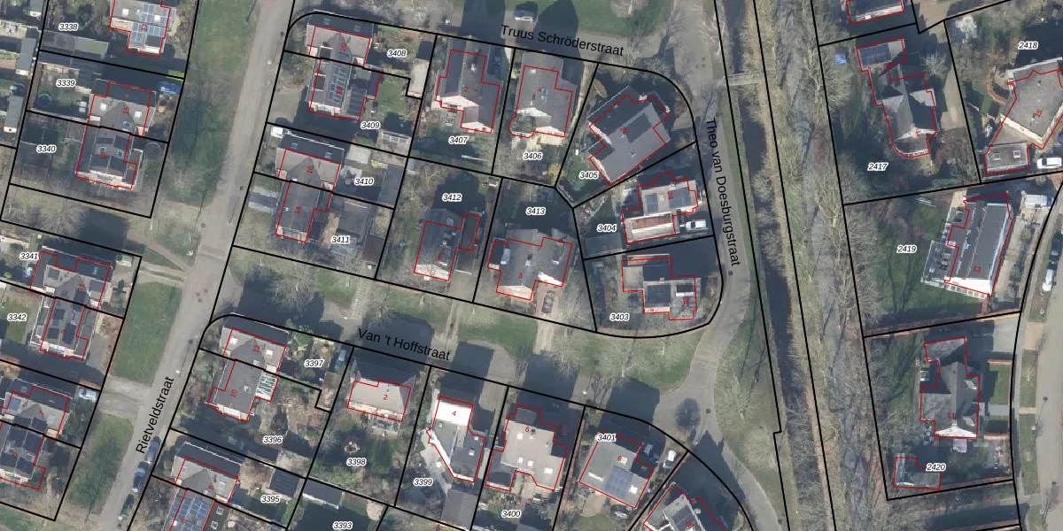 Het perceel waarop Van 't Hoffstraat 3 staat heeft een oppervlakte van 448 m². Dit is een groot perceel. De perceeloppervlakte wordt geregistreerd door het Kadaster. Gedetailleerde informatie over de maten van dit perceel kunt u vinden in het rapport Kadastrale kaart met maatvoering van Van 't Hoffstraat 3.