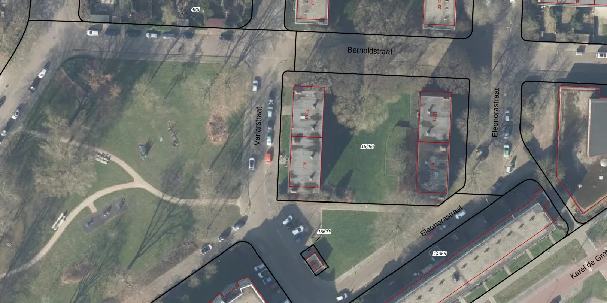 Varlarstraat 14 is gelegen op kadastraal perceel DVT00B15496. Deze kadastrale aanduiding is uniek en wordt gebruikt door het Kadaster om eigendomsrechten en andere zakelijke rechten vast te leggen. Het perceel maakt onderdeel uit van de kadastrale gemeente Deventer.