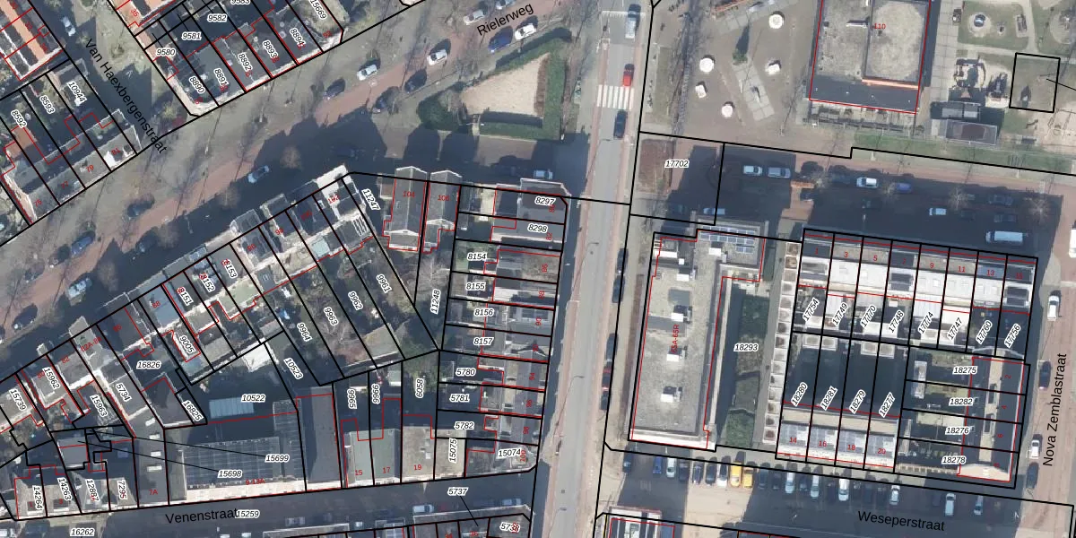 Gebruik de zoekbalk of klik op een perceel voor informatie over de adressen binnen dit perceel.