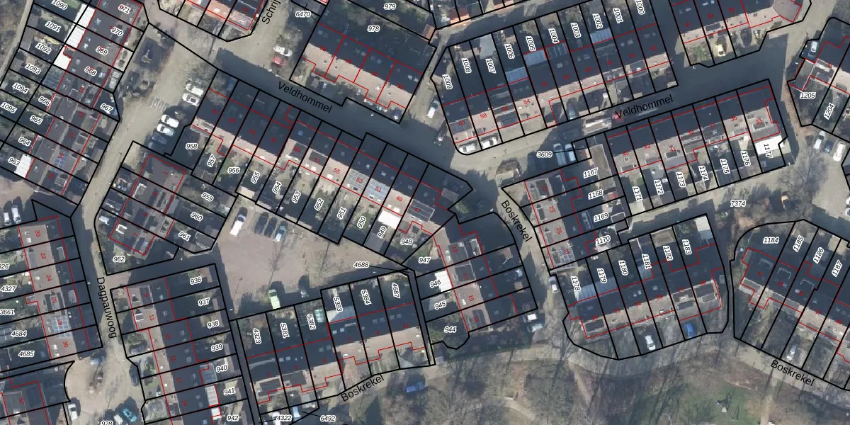 Het perceel waarop Veldhommel 47 staat heeft een oppervlakte van 200 m². Dit is een middelgroot perceel. De perceeloppervlakte wordt geregistreerd door het Kadaster. Gedetailleerde informatie over de maten van dit perceel kunt u vinden in het rapport Kadastrale kaart met maatvoering van Veldhommel 47.