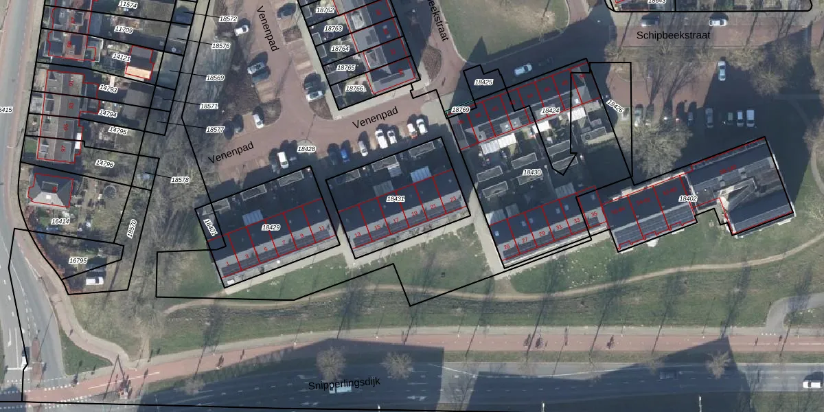 Het perceel waarop Venenpad 19 staat heeft een oppervlakte van 610 m². Dit is een groot perceel. De perceeloppervlakte wordt geregistreerd door het Kadaster. Gedetailleerde informatie over de maten van dit perceel kunt u vinden in het rapport Kadastrale kaart met maatvoering van Venenpad 19.
