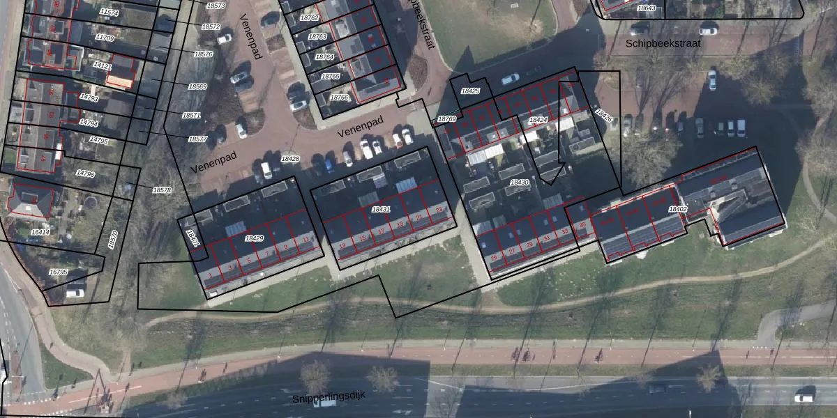 Het perceel waarop Venenpad 21 staat heeft een oppervlakte van 610 m². Dit is een groot perceel. De perceeloppervlakte wordt geregistreerd door het Kadaster. Gedetailleerde informatie over de maten van dit perceel kunt u vinden in het rapport Kadastrale kaart met maatvoering van Venenpad 21.