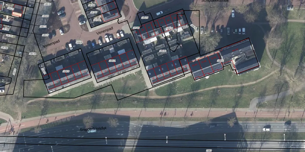 Venenpad 25 is gelegen op kadastraal perceel DVT00B18430. Deze kadastrale aanduiding is uniek en wordt gebruikt door het Kadaster om eigendomsrechten en andere zakelijke rechten vast te leggen. Het perceel maakt onderdeel uit van de kadastrale gemeente Deventer.