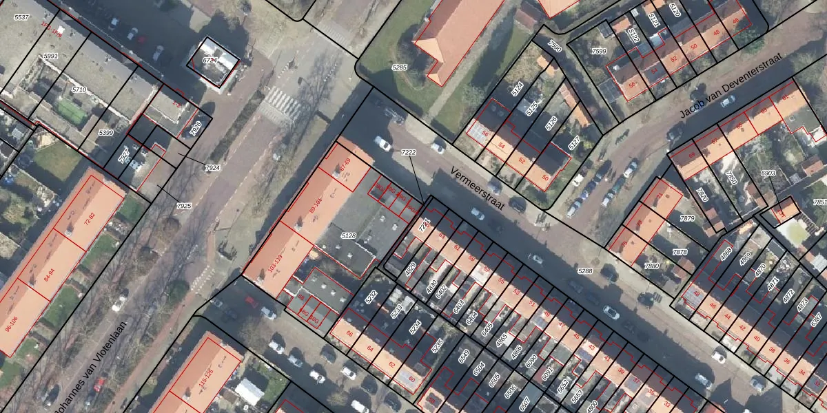 Het perceel waarop Vermeerstraat 69-G-4 staat heeft een oppervlakte van 1026 m². Dit is een zeer groot perceel. De perceeloppervlakte wordt geregistreerd door het Kadaster. Gedetailleerde informatie over de maten van dit perceel kunt u vinden in het rapport Kadastrale kaart met maatvoering van Vermeerstraat 69-G-4.