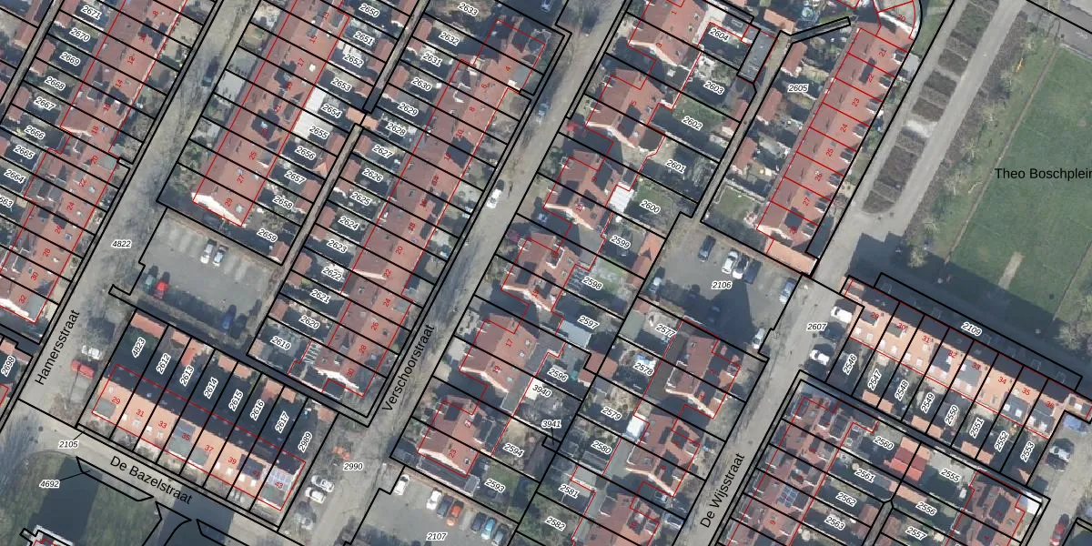 Het perceel waarop Verschoorstraat 13 staat heeft een oppervlakte van 224 m². Dit is een middelgroot perceel. De perceeloppervlakte wordt geregistreerd door het Kadaster. Gedetailleerde informatie over de maten van dit perceel kunt u vinden in het rapport Kadastrale kaart met maatvoering van Verschoorstraat 13.