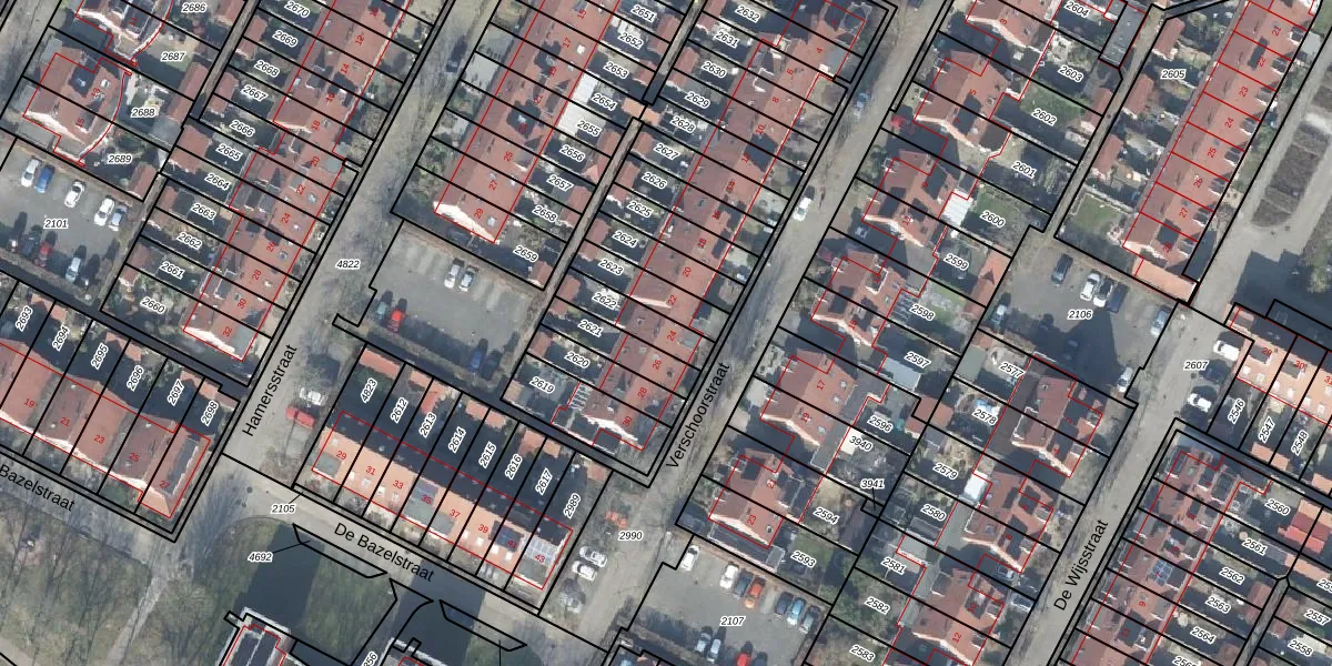 Het perceel waarop Verschoorstraat 24 staat heeft een oppervlakte van 119 m². Dit is een middelgroot perceel. De perceeloppervlakte wordt geregistreerd door het Kadaster. Gedetailleerde informatie over de maten van dit perceel kunt u vinden in het rapport Kadastrale kaart met maatvoering van Verschoorstraat 24.