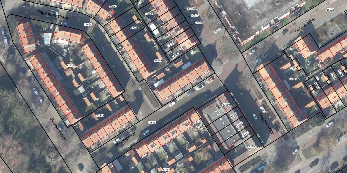 Het perceel waarop Verwerstraat 17 staat heeft een oppervlakte van 1390 m². Dit is een zeer groot perceel. De perceeloppervlakte wordt geregistreerd door het Kadaster. Gedetailleerde informatie over de maten van dit perceel kunt u vinden in het rapport Kadastrale kaart met maatvoering van Verwerstraat 17.