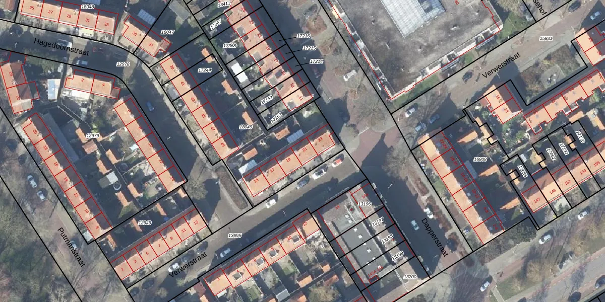 Het perceel waarop Verwerstraat 21 staat heeft een oppervlakte van 1390 m². Dit is een zeer groot perceel. De perceeloppervlakte wordt geregistreerd door het Kadaster. Gedetailleerde informatie over de maten van dit perceel kunt u vinden in het rapport Kadastrale kaart met maatvoering van Verwerstraat 21.