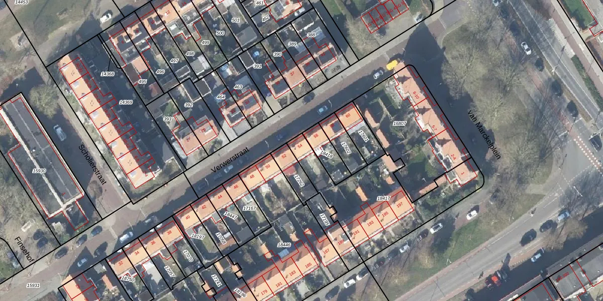 Het perceel waarop Verwerstraat 54 staat heeft een oppervlakte van 1025 m². Dit is een zeer groot perceel. De perceeloppervlakte wordt geregistreerd door het Kadaster. Gedetailleerde informatie over de maten van dit perceel kunt u vinden in het rapport Kadastrale kaart met maatvoering van Verwerstraat 54.