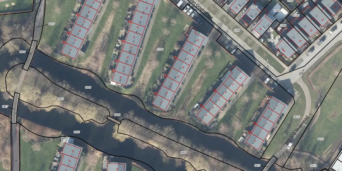 Het perceel waarop Vincent van Goghstraat 33 staat heeft een oppervlakte van 8902 m². Dit is een zeer groot perceel. De perceeloppervlakte wordt geregistreerd door het Kadaster. Gedetailleerde informatie over de maten van dit perceel kunt u vinden in het rapport Kadastrale kaart met maatvoering van Vincent van Goghstraat 33.