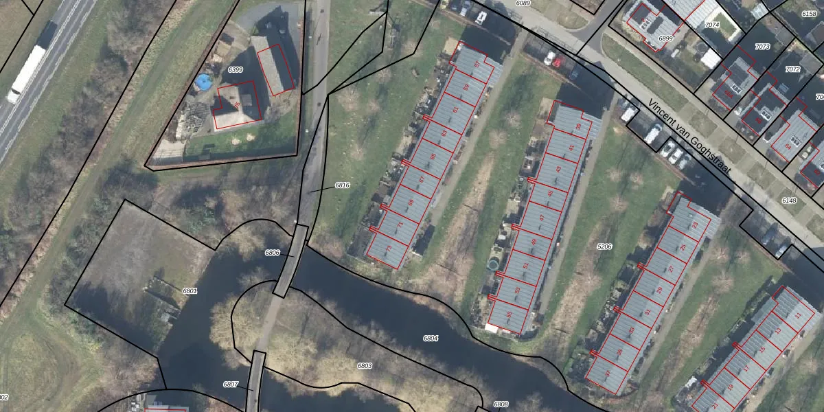 Het perceel waarop Vincent van Goghstraat 69 staat heeft een oppervlakte van 8902 m². Dit is een zeer groot perceel. De perceeloppervlakte wordt geregistreerd door het Kadaster. Gedetailleerde informatie over de maten van dit perceel kunt u vinden in het rapport Kadastrale kaart met maatvoering van Vincent van Goghstraat 69.
