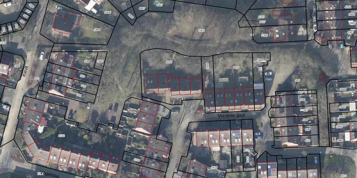 Vlaamse gaai 21 is gelegen op kadastraal perceel DVT00L6054. Deze kadastrale aanduiding is uniek en wordt gebruikt door het Kadaster om eigendomsrechten en andere zakelijke rechten vast te leggen. Het perceel maakt onderdeel uit van de kadastrale gemeente Deventer.