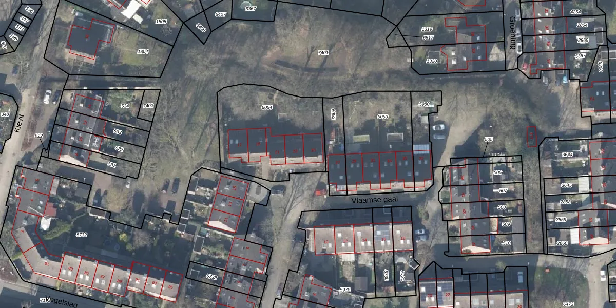 Vlaamse gaai 25 is gelegen op kadastraal perceel DVT00L6054. Deze kadastrale aanduiding is uniek en wordt gebruikt door het Kadaster om eigendomsrechten en andere zakelijke rechten vast te leggen. Het perceel maakt onderdeel uit van de kadastrale gemeente Deventer.