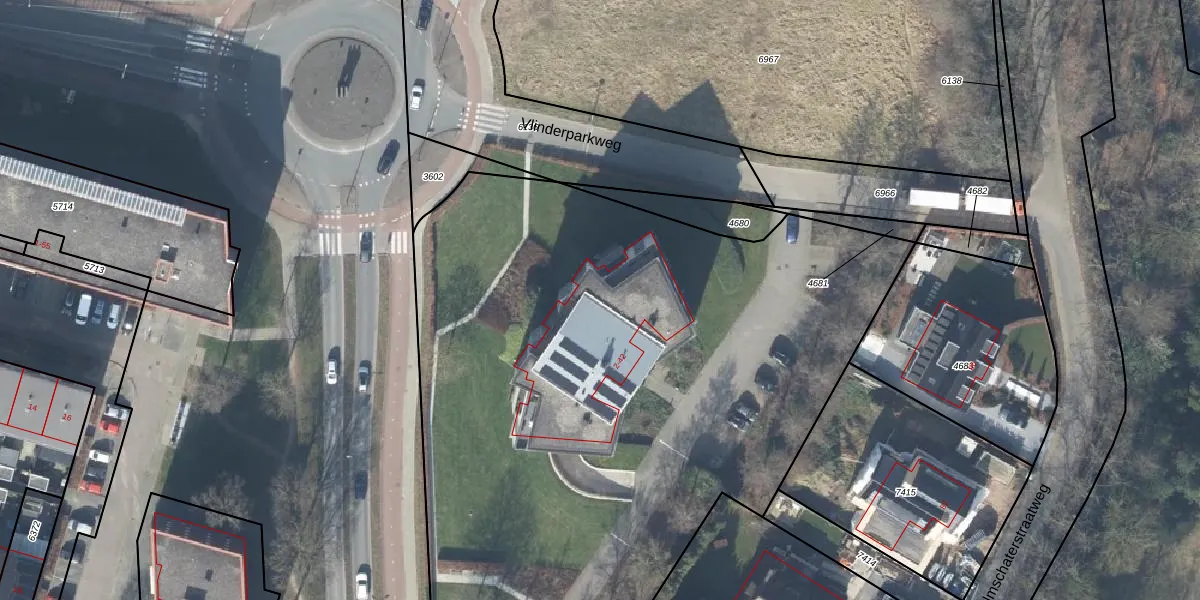 Het perceel waarop Vlinderparkweg 12 staat heeft een oppervlakte van 8932 m². Dit is een zeer groot perceel. De perceeloppervlakte wordt geregistreerd door het Kadaster. Gedetailleerde informatie over de maten van dit perceel kunt u vinden in het rapport Kadastrale kaart met maatvoering van Vlinderparkweg 12.