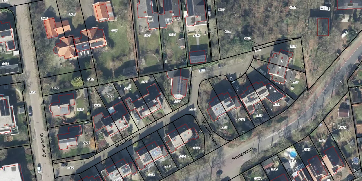 Gebruik de zoekbalk of klik op een perceel voor informatie over de adressen binnen dit perceel.