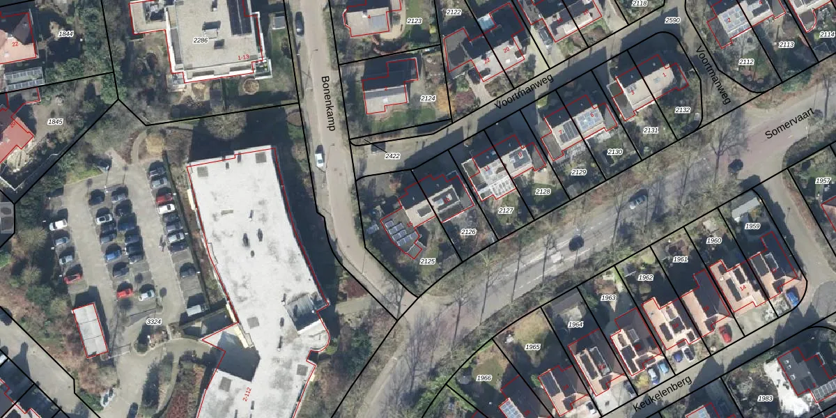 Gebruik de zoekbalk of klik op een perceel voor informatie over de adressen binnen dit perceel.