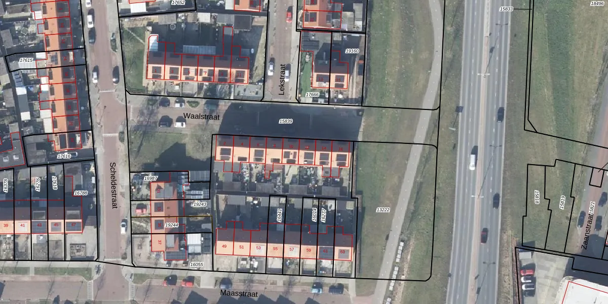 Het perceel waarop Waalstraat 12 staat heeft een oppervlakte van 1859 m². Dit is een zeer groot perceel. De perceeloppervlakte wordt geregistreerd door het Kadaster. Gedetailleerde informatie over de maten van dit perceel kunt u vinden in het rapport Kadastrale kaart met maatvoering van Waalstraat 12.