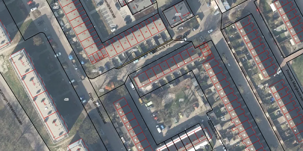Het perceel waarop Waldeck Pyrmontstraat 4 staat heeft een oppervlakte van 3182 m². Dit is een zeer groot perceel. De perceeloppervlakte wordt geregistreerd door het Kadaster. Gedetailleerde informatie over de maten van dit perceel kunt u vinden in het rapport Kadastrale kaart met maatvoering van Waldeck Pyrmontstraat 4.