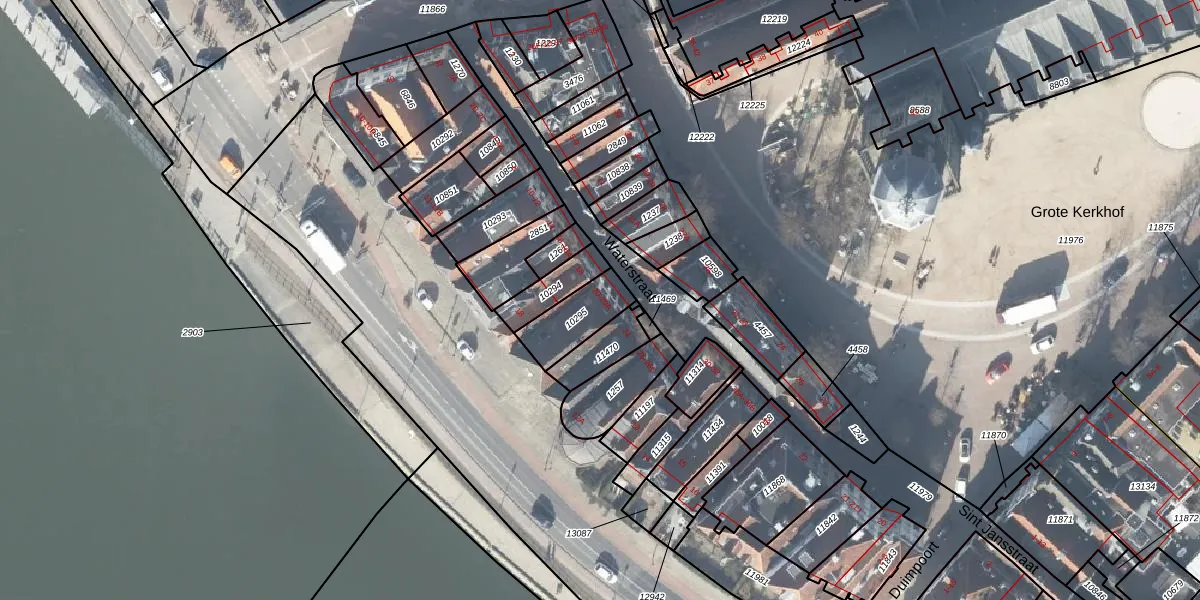 Waterstraat 20 is gelegen op kadastraal perceel DVT00E10295. Deze kadastrale aanduiding is uniek en wordt gebruikt door het Kadaster om eigendomsrechten en andere zakelijke rechten vast te leggen. Het perceel maakt onderdeel uit van de kadastrale gemeente Deventer.