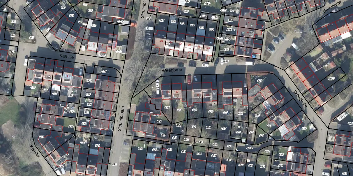 Het perceel waarop Weegbree 27 staat heeft een oppervlakte van 224 m². Dit is een middelgroot perceel. De perceeloppervlakte wordt geregistreerd door het Kadaster. Gedetailleerde informatie over de maten van dit perceel kunt u vinden in het rapport Kadastrale kaart met maatvoering van Weegbree 27.