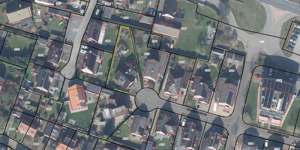 Het perceel waarop Westerkamp 8 staat heeft een oppervlakte van 640 m². Dit is een groot perceel. De perceeloppervlakte wordt geregistreerd door het Kadaster. Gedetailleerde informatie over de maten van dit perceel kunt u vinden in het rapport Kadastrale kaart met maatvoering van Westerkamp 8.