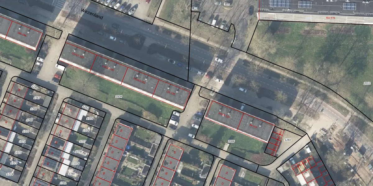 Wezenland 121-G-1 is gelegen op kadastraal perceel DVT00F2004. Deze kadastrale aanduiding is uniek en wordt gebruikt door het Kadaster om eigendomsrechten en andere zakelijke rechten vast te leggen. Het perceel maakt onderdeel uit van de kadastrale gemeente Deventer.