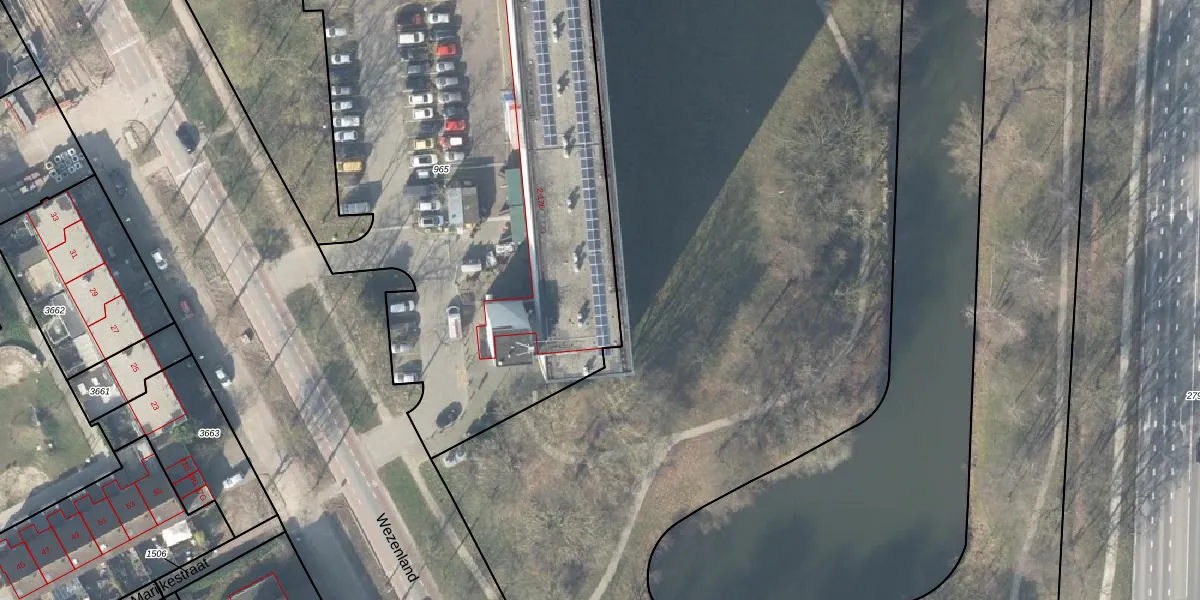 Het perceel waarop Wezenland 138 staat heeft een oppervlakte van 3640 m². Dit is een zeer groot perceel. De perceeloppervlakte wordt geregistreerd door het Kadaster. Gedetailleerde informatie over de maten van dit perceel kunt u vinden in het rapport Kadastrale kaart met maatvoering van Wezenland 138.