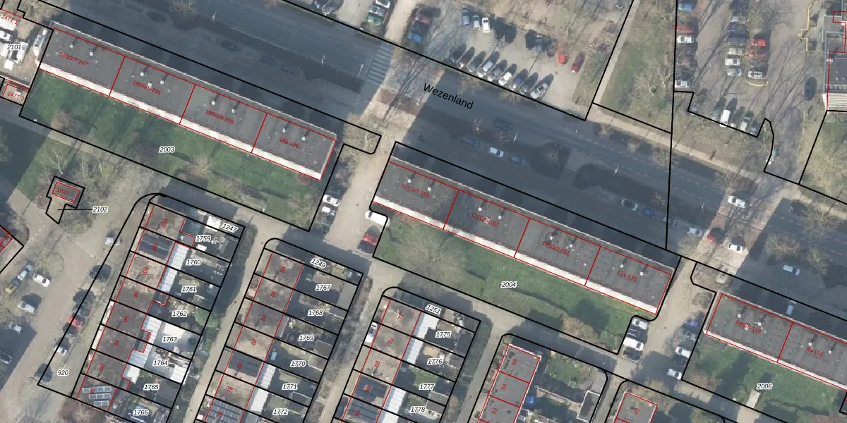 Wezenland 175 is gelegen op kadastraal perceel DVT00F2004. Deze kadastrale aanduiding is uniek en wordt gebruikt door het Kadaster om eigendomsrechten en andere zakelijke rechten vast te leggen. Het perceel maakt onderdeel uit van de kadastrale gemeente Deventer.
