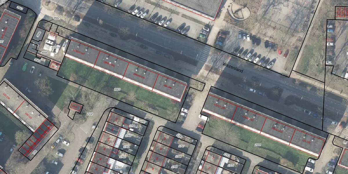 Wezenland 187 is gelegen op kadastraal perceel DVT00F2003. Deze kadastrale aanduiding is uniek en wordt gebruikt door het Kadaster om eigendomsrechten en andere zakelijke rechten vast te leggen. Het perceel maakt onderdeel uit van de kadastrale gemeente Deventer.
