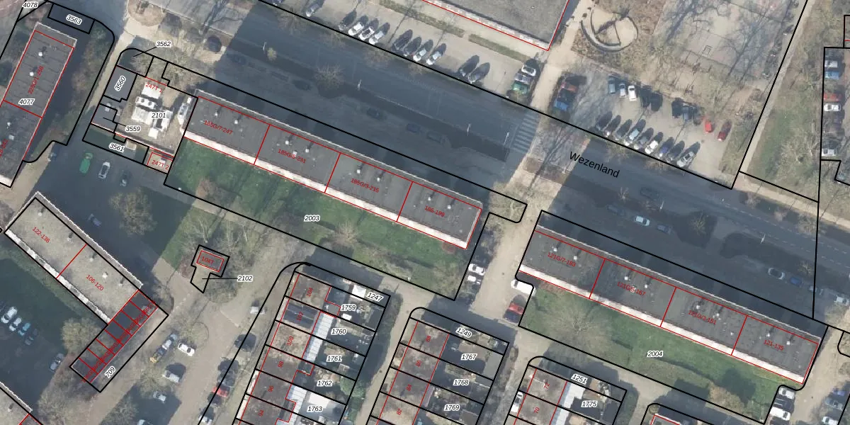 Het perceel waarop Wezenland 195 staat heeft een oppervlakte van 2101 m². Dit is een zeer groot perceel. De perceeloppervlakte wordt geregistreerd door het Kadaster. Gedetailleerde informatie over de maten van dit perceel kunt u vinden in het rapport Kadastrale kaart met maatvoering van Wezenland 195.